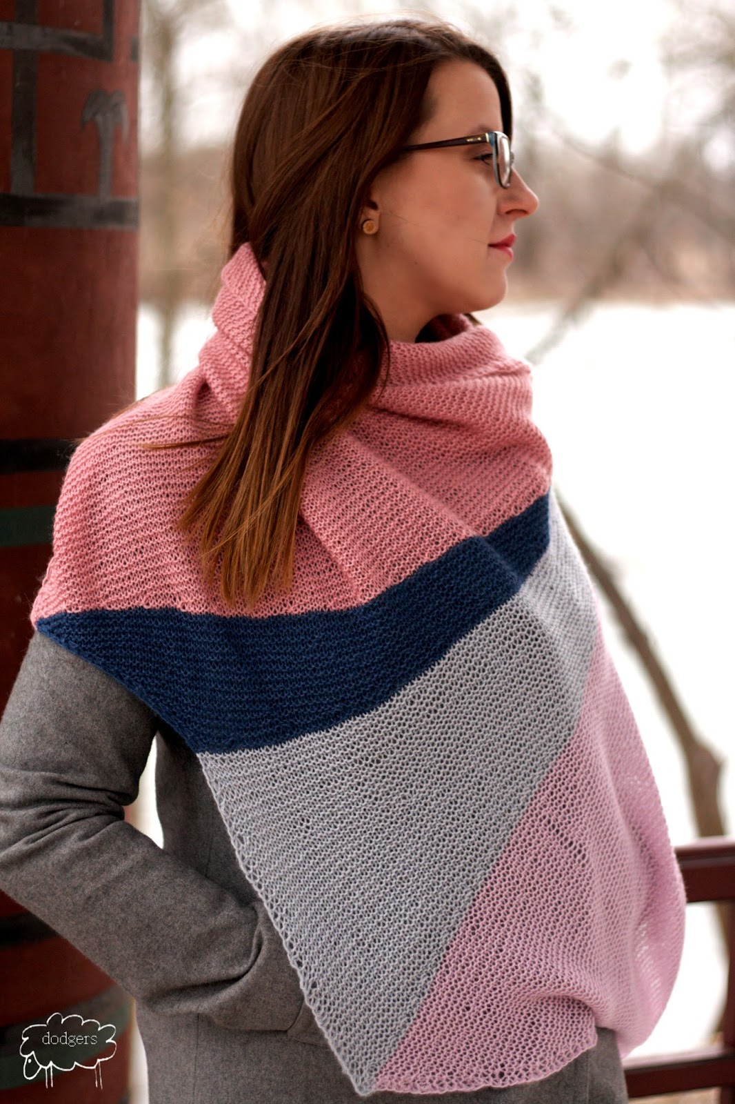 Mam, mam swoje trójkąty. R Ó Ż O W E trójkąty. Chusta jest gigantyczna, dzierga się sama i można w trakcie wykorzystać resztki zalegające w szufladach, pudłach czy innych wersalkach. O zaletach pisała Marzena (klik) i powiem Wam, że nie kłamała, to 3D faktycznie tam jest! Testowanie było przyjemnością, choć miałam lekki falstart- chora ja, chory Judoka, obolały brzuszek Kicu oraz nowy komputer dla Taty. Z tego, co mi wiadomo, da się ją zrobić w 4 dni z dzierganiem próbki włącznie.